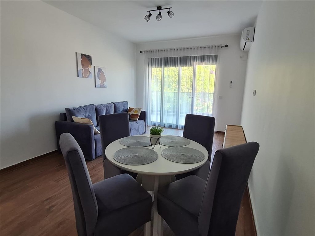 Apartmán o rozloze 67 m2 se nachází ve 4. patře a sestává z 2 ložnic, 1 koupelny, kuchyně s jídelnou a obývacím pokojem a terasy s výhledem na moře. Prodává se plně zařízený a po celém bytě je instalováno podlahové vytápění.