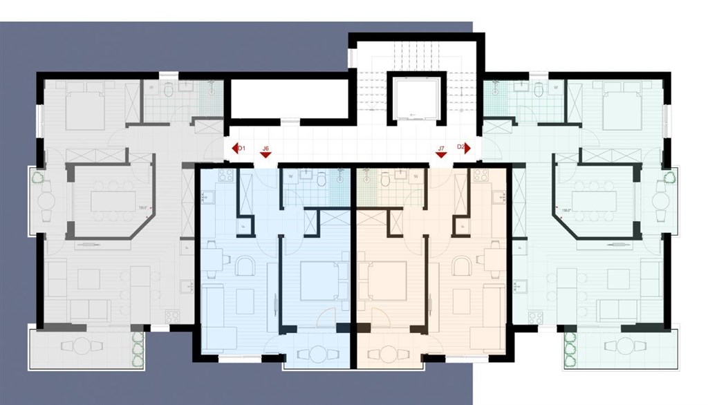 Budova má celkem 6 podlaží a nabízí apartmány s 1, 2 či 3 ložnicemi, o rozloze od 38 m2 do 116 m2. Apartmány budou mít 1 nebo 2 terasy, budou se prodávat nezařízené a apartmány od 3. podlaží výš budou mít výhled na moře.