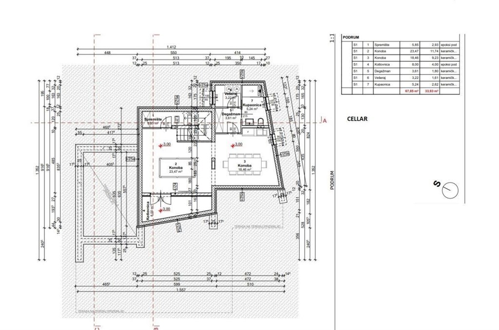 Vila je nyní ve výstavbě a sestává ze suterénu, přízemí a 1. patra. V suterénu o rozloze 67,85 m2 naleznete 3 komory, kotelnu, prádelnu, koupelnu a technickou místnost. V přízemí o rozloze 154,27 m2 je obývací pokoj, kuchyň, jídelna, zastřešená terasa a studiový apartmán se svou soukromou zastřešenou terasou. Po schodech dojdete do 1. patra o rozloze 143,58 m2, kde jsou 3 ložnice, 3 koupelny, chodba, balkon a 2 terasy.