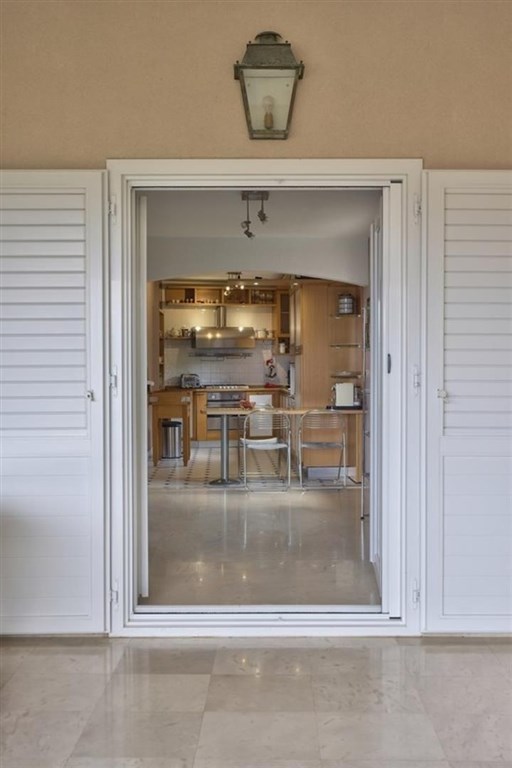 První dům zabírá plochu 300 m2 a sestává z přízemí, prvního a druhého podkrovního patra. V přízemí se nacházejí dvě ložnice, studovna s video kamerovým systémem, jež se zároveň používá jako ložnice, dvě koupelny a komora. V prvním patře máte prostorný obývací pokoj (40 m2), kuchyni s terasou s otevřeným výhledem na moře a centrum obce. Ve druhém podkrovním patře je pokoj, koupelna a minikuchyňka.