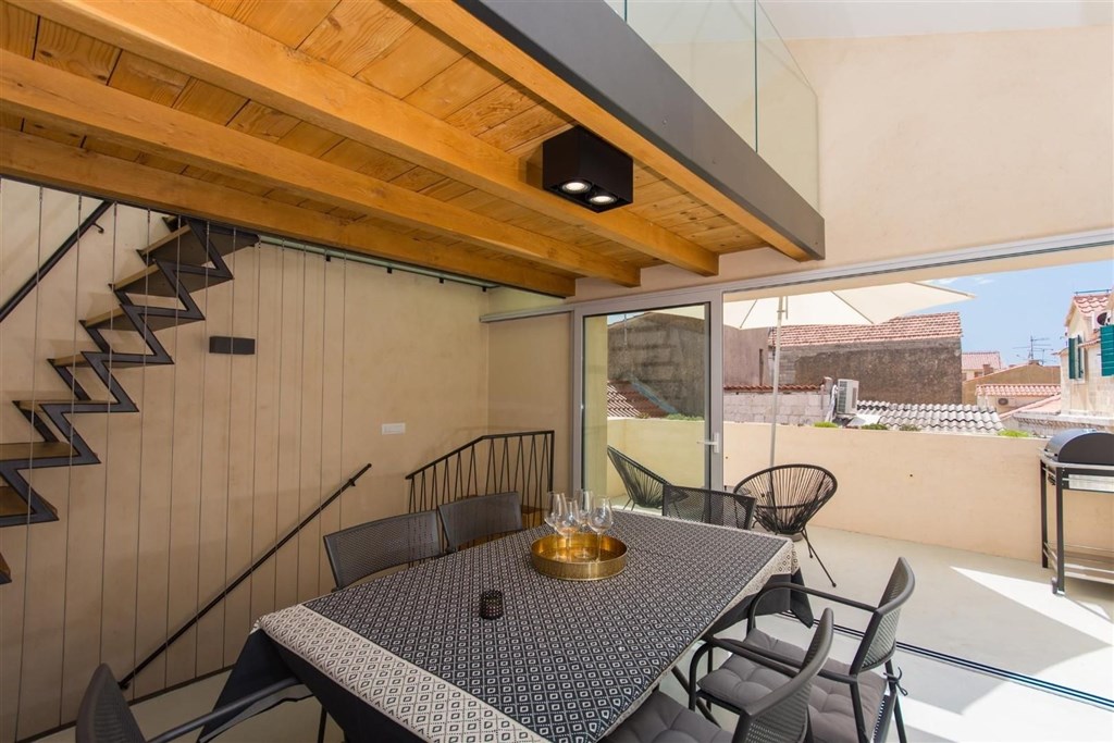 Dovolujeme si Vám nabídnout renovovaný řadový kamenný dům v historickém městě Trogir, které je zařazeno na seznam světového dědictví UNESCO. Dům prošel elegantní a důkladnou renovací v souladu se zachováním tradiční dalmatské architektury a v kombinaci s okouzlujícím interiérem, kterému dominují exponované kamenné zdi a masivní dřevěné trámoví, vytváří zcela moderní a komfortní domov odpovídající současnému vyššímu standardu bydlení.