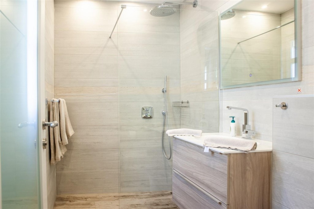 V prvním patře naleznete tři ložnice, a každou s vlastní koupelnou. Dvě větší ložnice mají přístup na společný balkon, přičemž menší ložnice má vyvýšené patro na spaní. Ve druhém patře je prostorná ložnice s balkonem a krásným výhledem, a jedna koupelna.