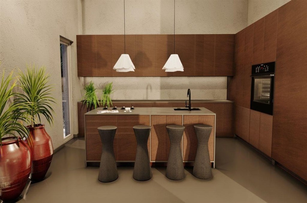 Obytná část vily by měla tuto dispozici: přízemí – chodba, obývací pokoj s jídelnou, kuchyně, pracovna/ložnice, koupelna a krytá terasa; 1. patro – chodba, tři ložnice, tři koupelny. V suterénu by byl domácí wellness. Klidné prostředí zeleně a obytných vilek. Vzdálenost do centra Vrbnika i k moři je přibližně 4 km.