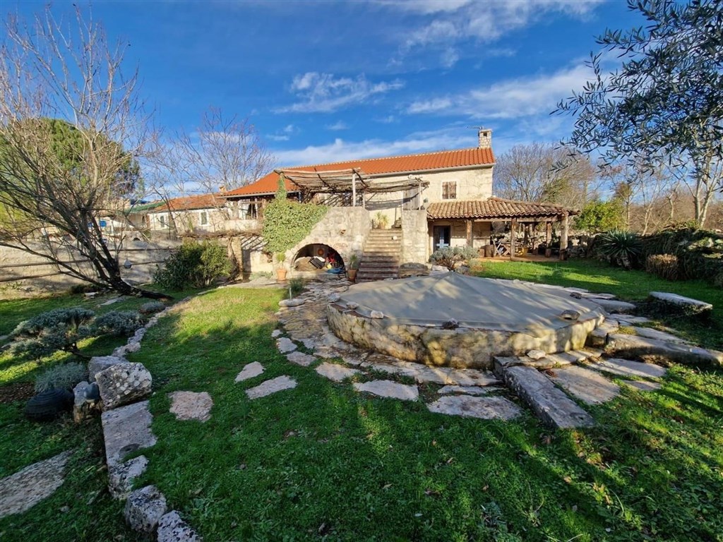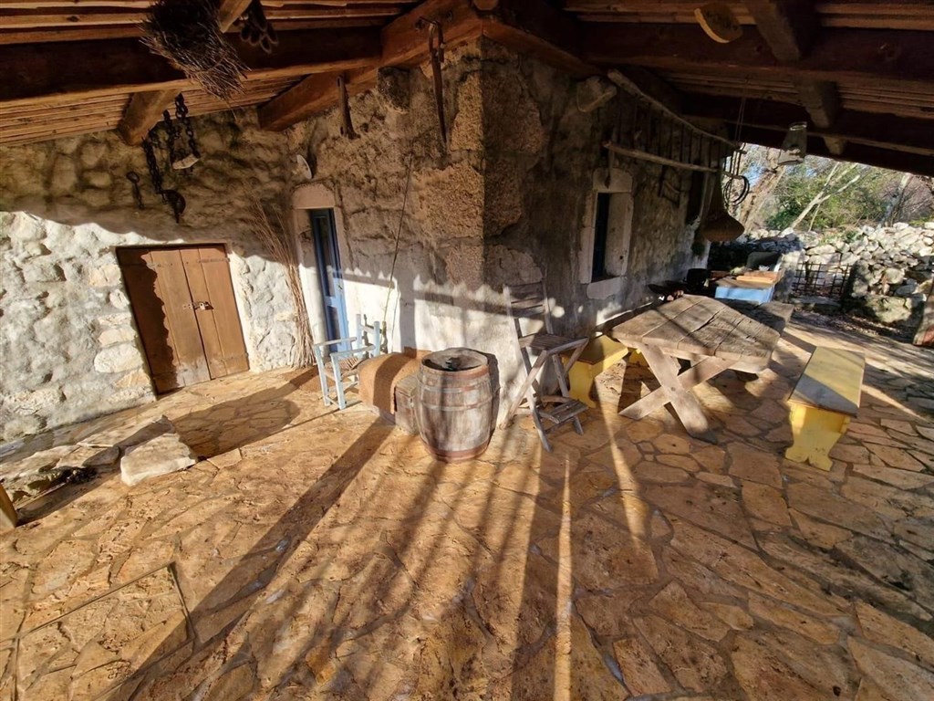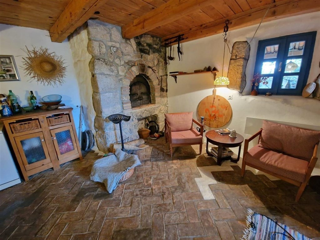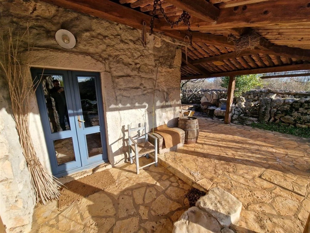 Dům se prodává částečně vybavený a díky rustikálnímu kamennému interiéru má speciální kouzlo. Na pozemku je upravená zahrada, bazén a 3 parkovací místa. Dům se nachází v klidné oblasti přibližně 3,5 km od centra a od moře.