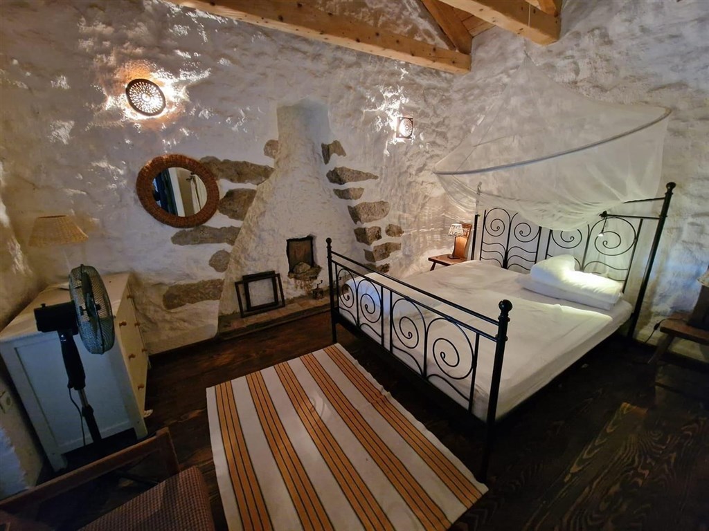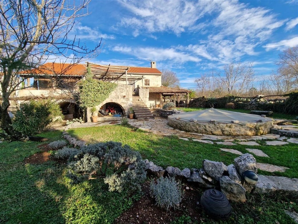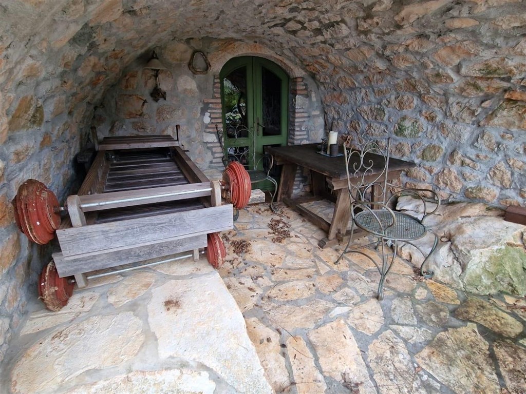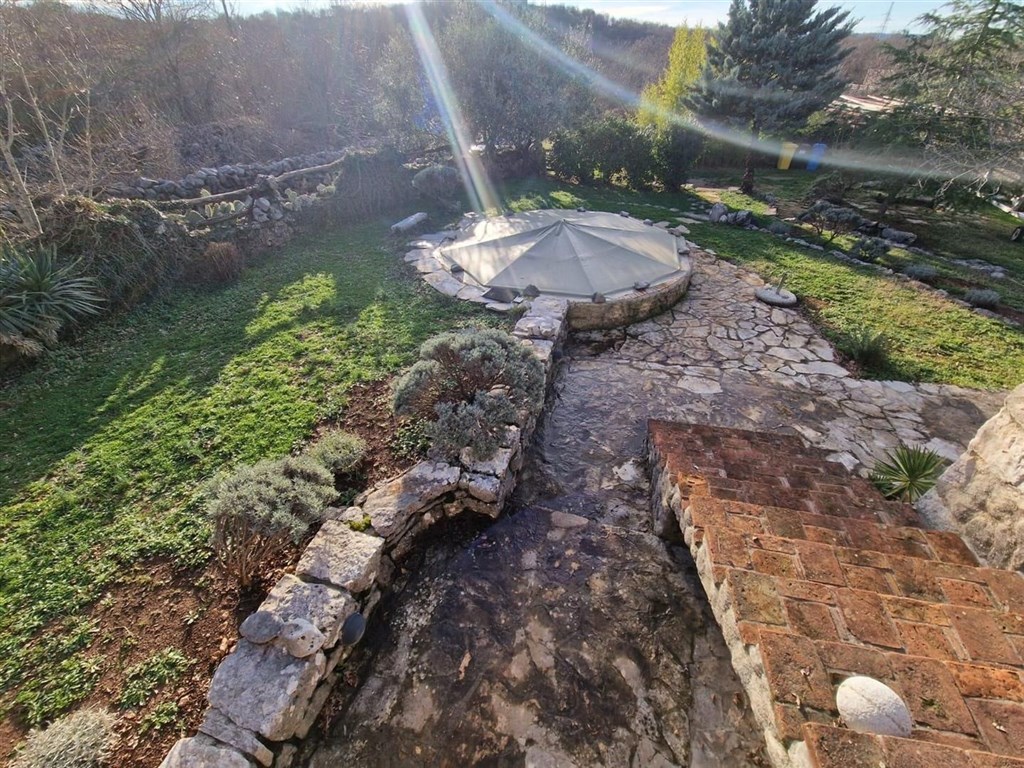 Dům se prodává částečně vybavený a díky rustikálnímu kamennému interiéru má speciální kouzlo. Na pozemku je upravená zahrada, bazén a 3 parkovací místa. Dům se nachází v klidné oblasti přibližně 3,5 km od centra a od moře.