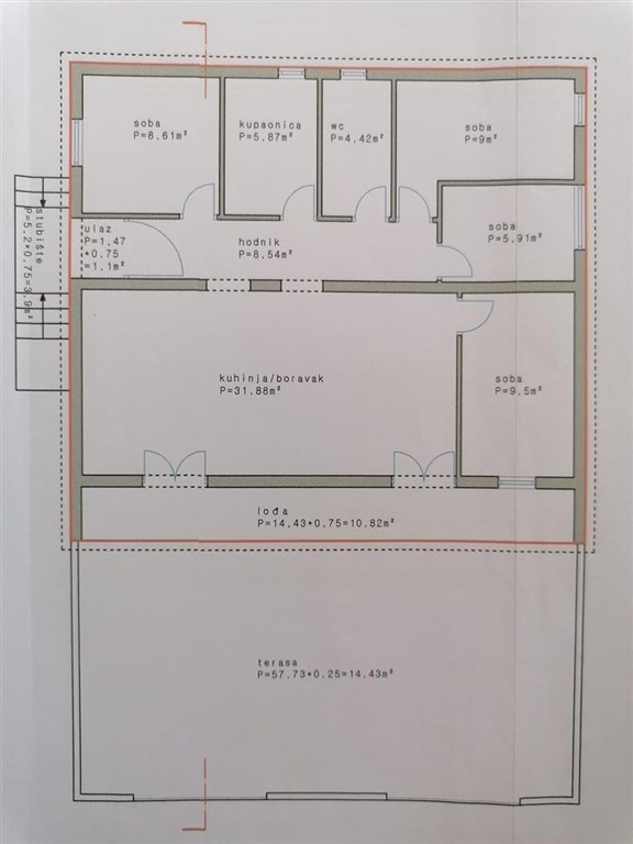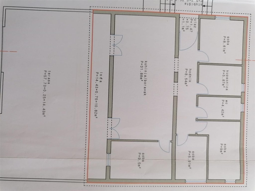 V domě jsou 4 ložnice, 2 koupelny, WC, chodba, 3 skladovací místnosti, kuchyň s obývacím pokojem, lodžie a prostorná terasa s grilem a posezením, ze které je pěkný výhled na moře.