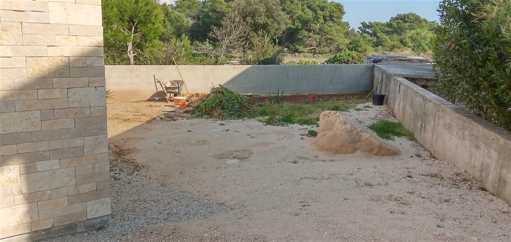 V přízemí se nachází obývací pokoj s jídelnou a kuchyňským koutem, toaleta, komora, garáž a krytá terasa (17,57 m2). Schody vedou do prvního patra, kde jsou čtyři komfortní ložnice, dvě koupelny, chodba a dvě terasy – krytá (16,47 m2) a otevřená (14,92 m2). Vila je napojena na vodovodní řád a má septik. Bazén je potřeba dostavět, na podzim také započne úprava fasády vily. Veškerou občanskou vybavenost máte v blízkém dosahu. Vzdálenost k moři je přibližně 350 m.