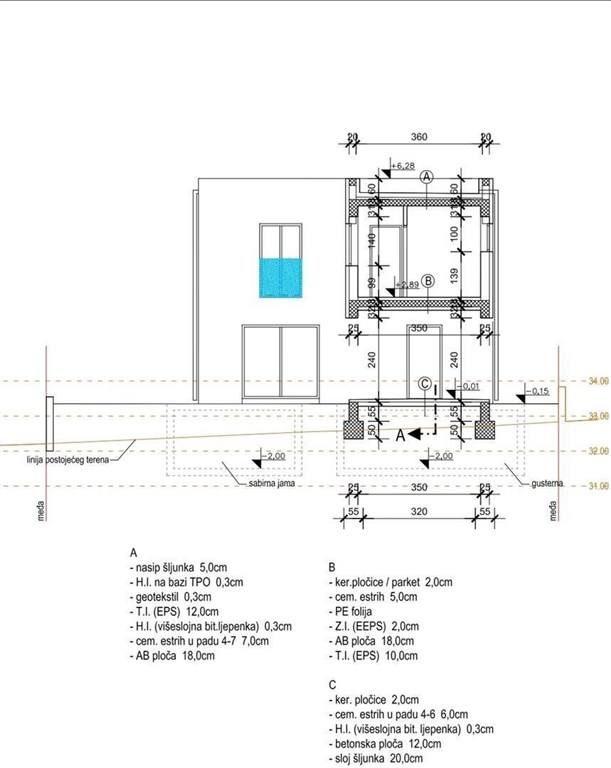 Dům bude připojený na vodovodní řád a městskou kanalizaci, vytápění a chlazení bude zajištěno klimatizací a bude mít telefonní přípojku. Okna i posuvné dveře budou mít dvojité sklo, rolety z PVC a budou odolné proti nárazům větru. V interiéru je plánovaná montáž dveří ze dřeva. V blízkosti je veškerá občanská vybavenost. Parkování je vyhrazené na pozemku před domem. Vzdálenost k moři je přibližně 610 m.