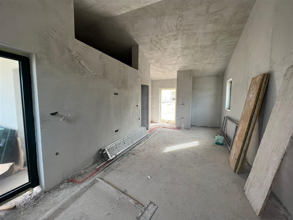 Dům se nachází ve výstavbě a je součástí komplexu několika řadových domků. Sestává ze vstupní chodby, kuchyně s jídelnou a obývacím pokojem, 1 ložnice, 1 koupelny a 1 galerie nad ložnicí. Z obývacího pokoje a z ložnice máte přístup na krytou terasu. V koupelně bude sprchový kout, WC, pračka a bojler. Dům je světlý, vzdušný a má vysoké stropy. Je možné dokončit interiér vily za cenu asi 30.000 €.