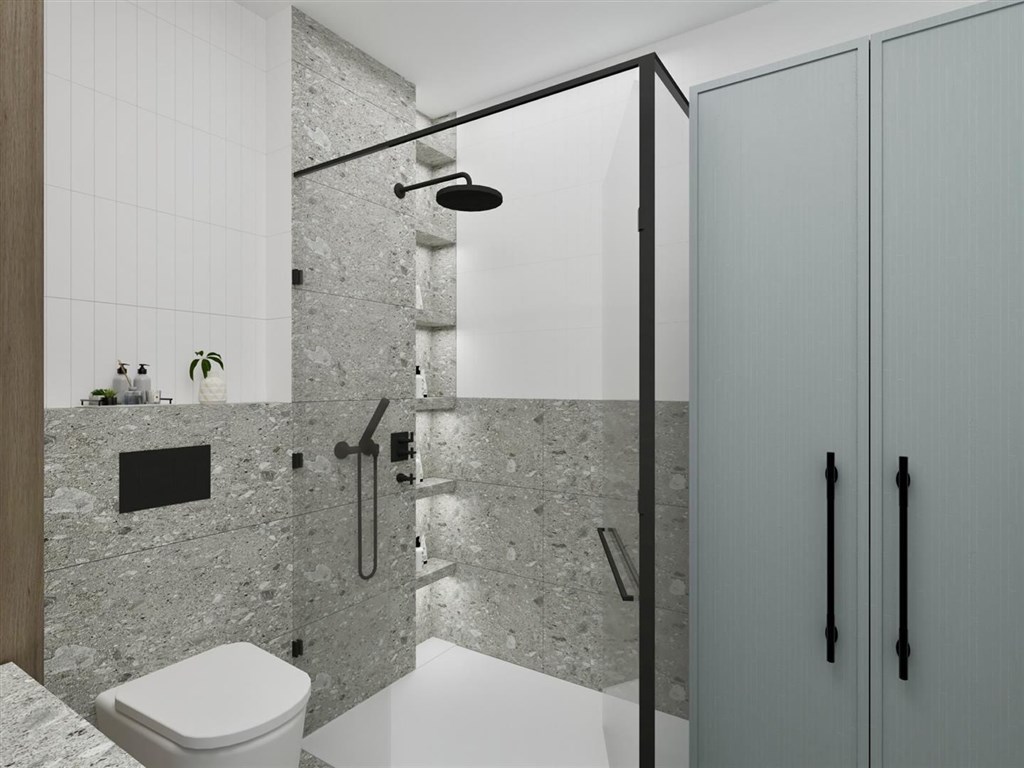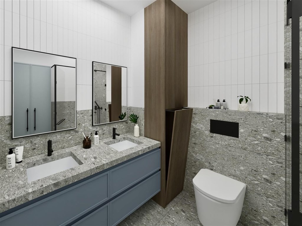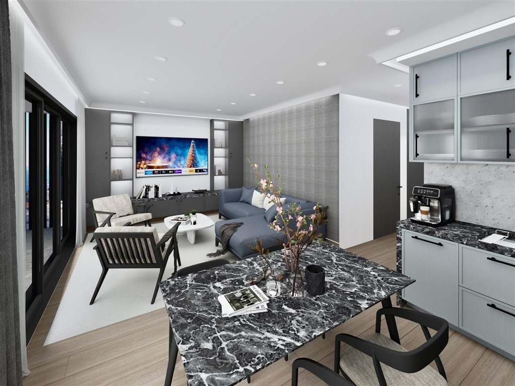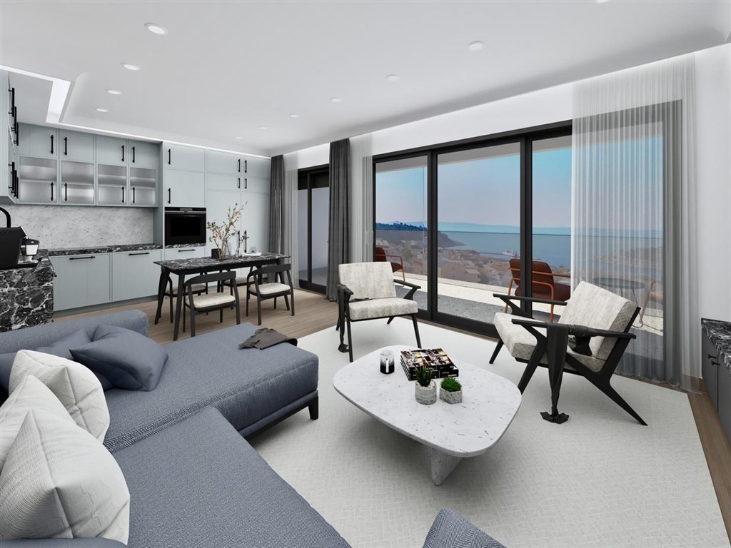 Nabízený apartmán S2 o ploše 76,96 m2 je situovaný v 1. patře a sestává z chodby, 2 ložnic, 2 koupelen, kuchyně s jídelnou a obývacím pokojem a prostorné lodžie o ploše 17,24 m2. Apartmán je světlý a má velké otevřené prostory propojené s venkovní částí a nabízí tak krásný výhled na moře a město, který nemůže být ničím narušen.