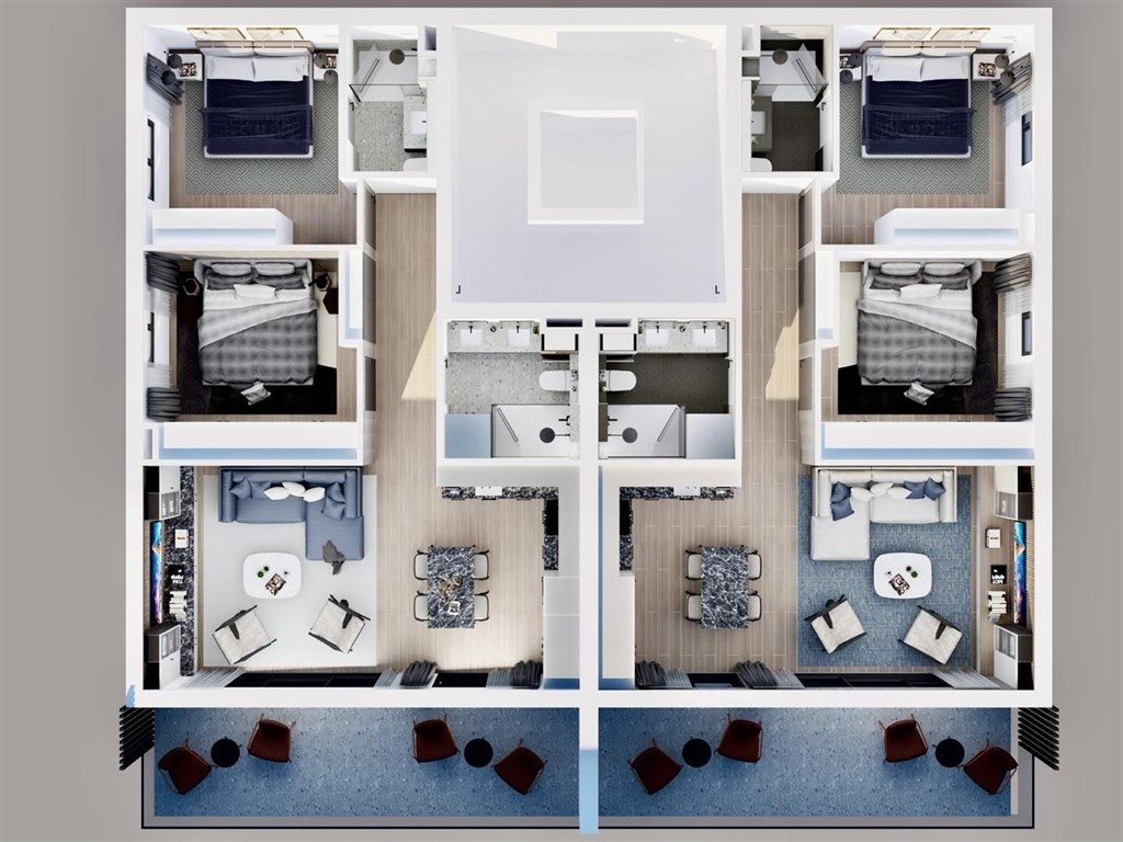 S6: 3. patro, 158,18 m2 (chodba, 3 ložnice, 3 koupelny, obývací pokoj + kuchyň + jídelna, lodžie) – 855.500 €