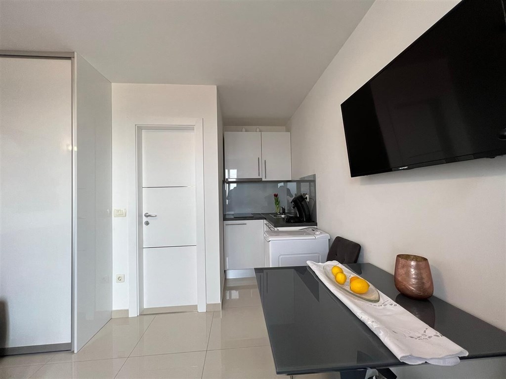 Apartmán se nachází v nově postavené vile a rozkládá se na druhém a třetím patře. V nižším patře naleznete kuchyň s jídelnou a obývacím pokojem, koupelnu a jižně orientovanou lodžii s vestavěnou markýzou. Když vyjdete po schodech do vyššího patra, naleznete zde chodbu, 3 ložnice a koupelnu. Apartmán se prodává plně vybavený, zařízený vysoce kvalitními materiály a nabízí krásné výhledy na moře a přístav. K apartmánu náleží také studiový apartmán o rozloze 16 m2 nacházející se v přízemí vily, má klimatizaci a je plně vybavený.