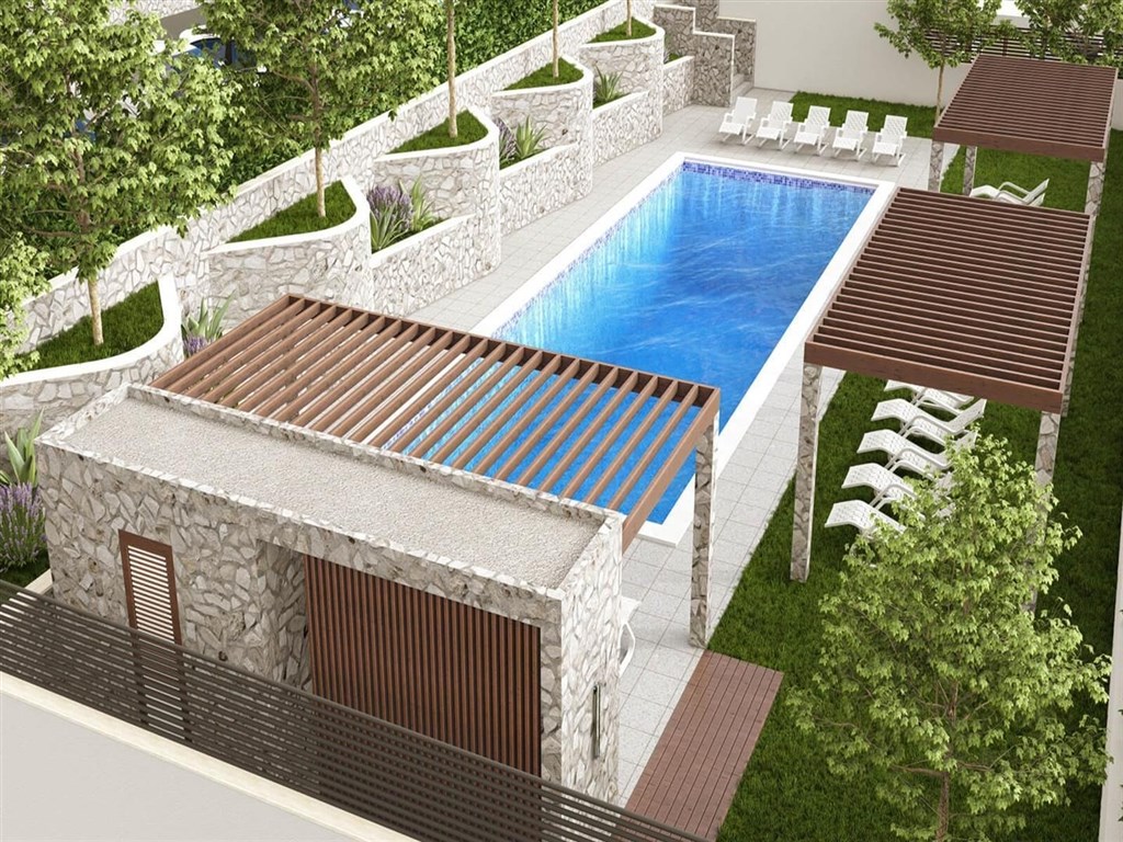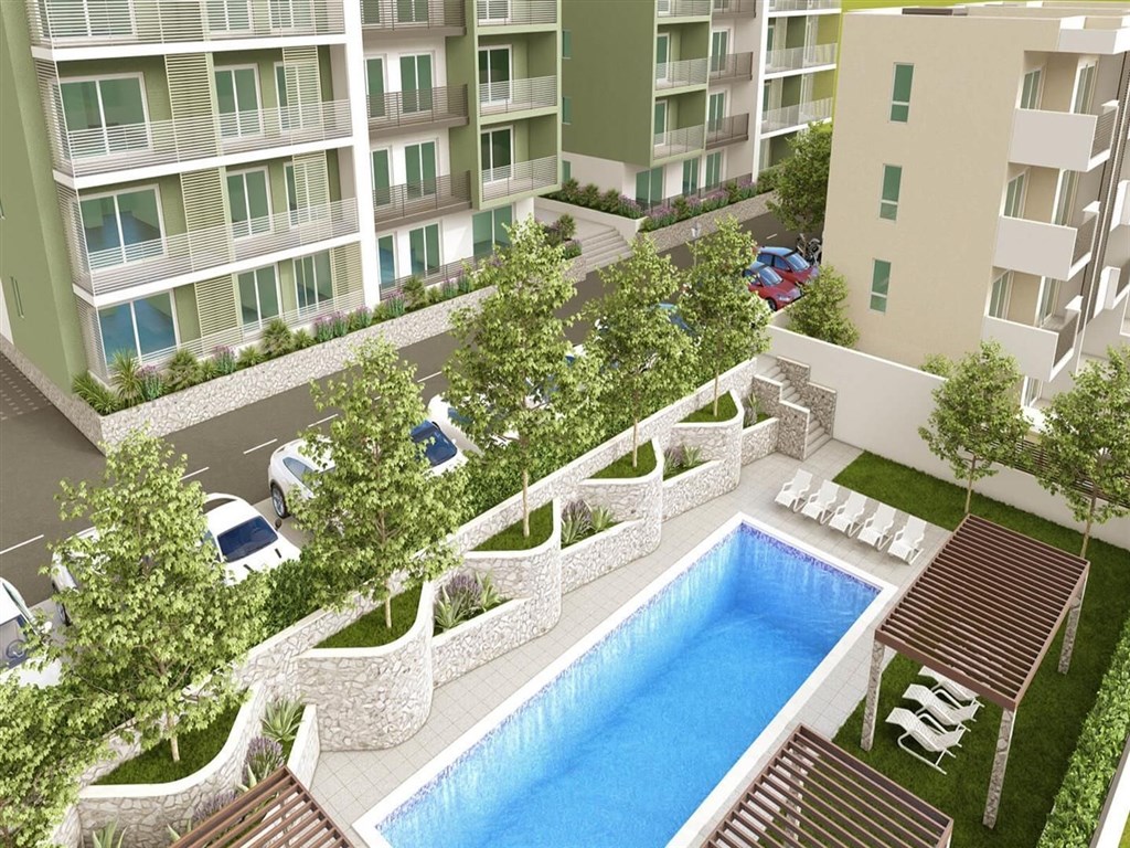 Apartmán je vybavený klimatizací, má bezpečnostní vchodové dveře, přípojku na telefon, internet, TV satelit. V ceně je garážové, nebo venkovní parkovací místo. Některé apartmány mají také sklepní prostor k uskladnění věcí. Apartmán má jižní orientaci. Budova je součástí komplexu, ve kterém se nachází venkovní bazén s relaxační zónou. Výstavba začala v říjnu roku 2022 a plánované dokončení spadá na léto 2025. Vzdálenost k moři je přibližně 800 m. Další apartmány v budově ke koupi naleznete na našich webových stránkách pod ID: CHAN146.