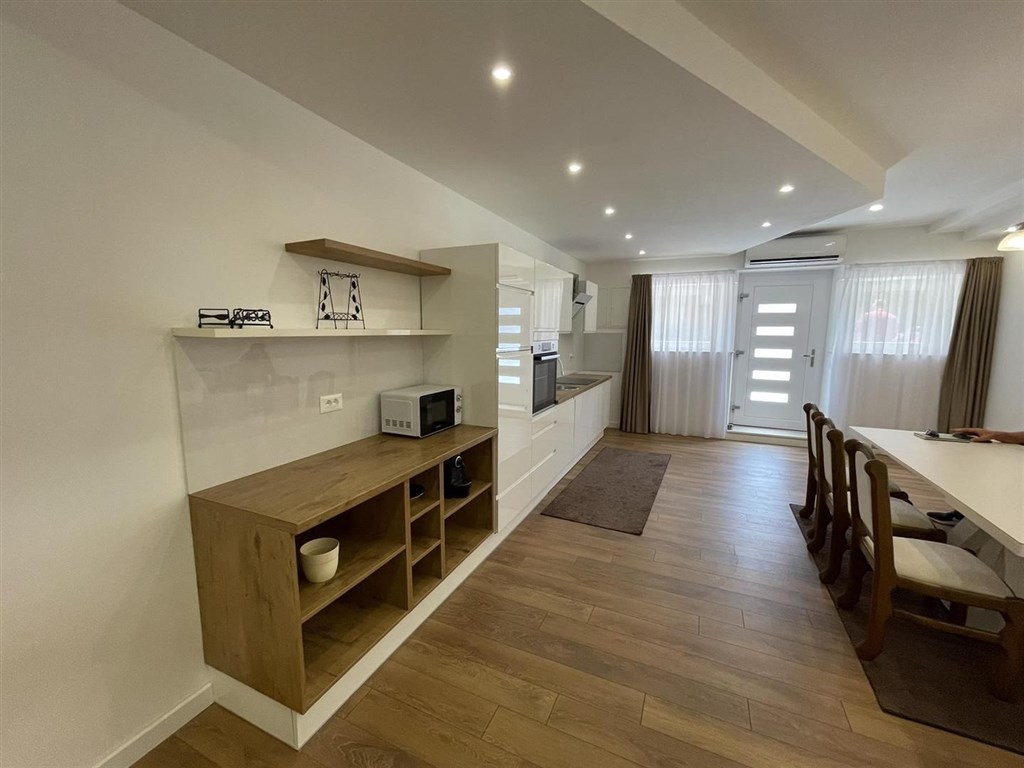 Byt byl v roce 2023 plně zrekonstruován včetně všech instalací, je moderně vybavený a připravený k nastěhování. Je vybaven špičkovými materiály, má 3 klimatizační jednotky, tepelnou a zvukovou izolaci a připojení na internet. Budova je připojená na vodovodní a kanalizační řád a má elektřinu. Nemovitost je ideální k turistickému pronájmu. Parkování je možné na ulici před budovou. Vzdálenost do centra města je asi 350 m a k moři přibližně 800 m.