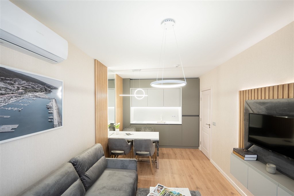 Apartmán č. 109 o celkové rozloze 49,78 m2 (zastavěná plocha 42 m2 + 7,78 m2 plocha společných částí) sestává z chodby, koupelny s toaletou, ložnice a obývacího pokoje s kuchyní a jídelním koutem se vstupem na terasu a výhledem na bazén. Jako bonus kupující nyní získává plně vybavený apartmán stylovým nábytkem. V apartmánu je přípojka na kabelovou televizi a internet.
