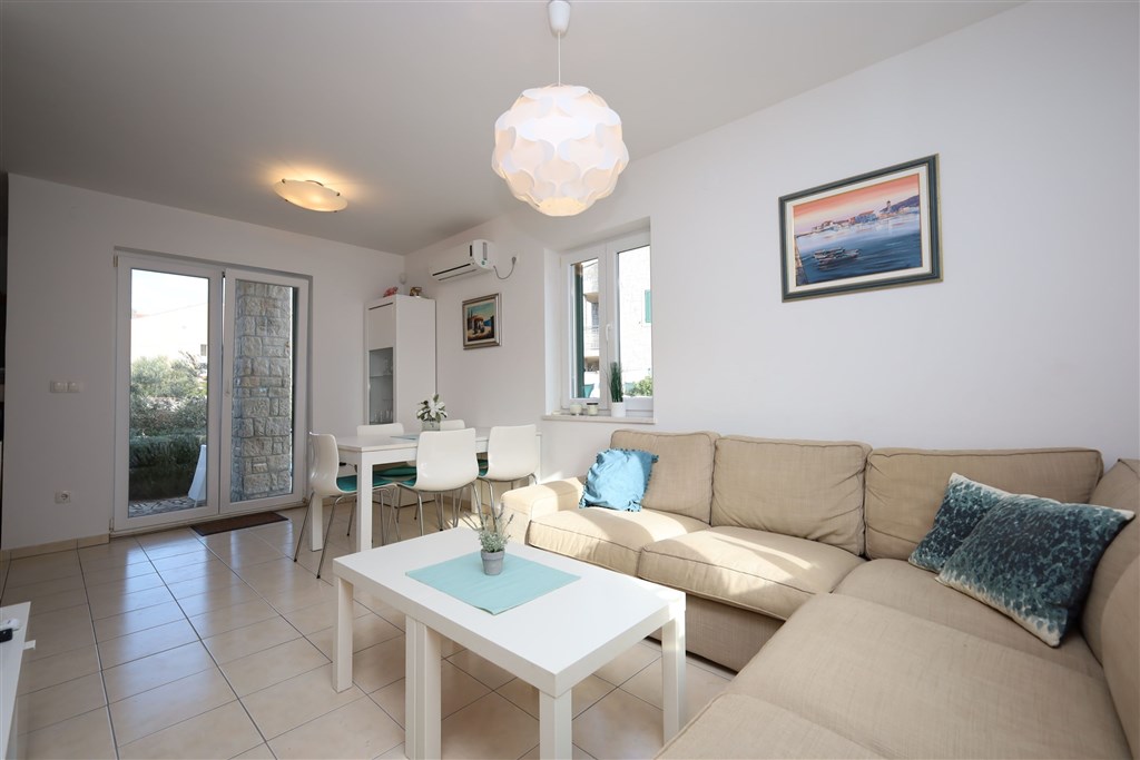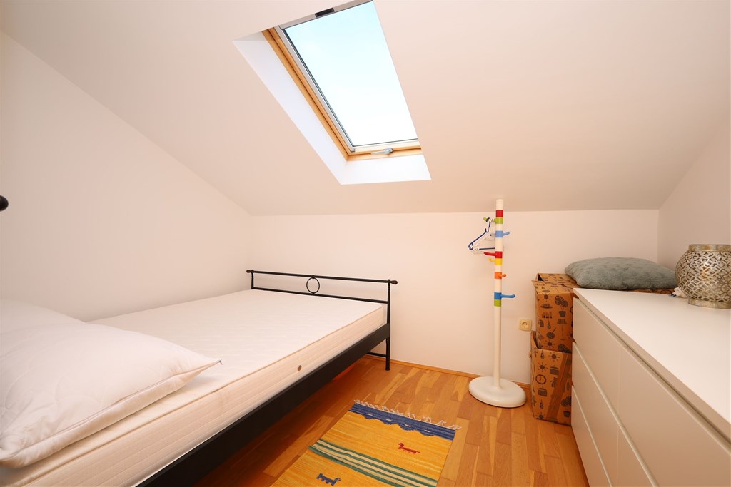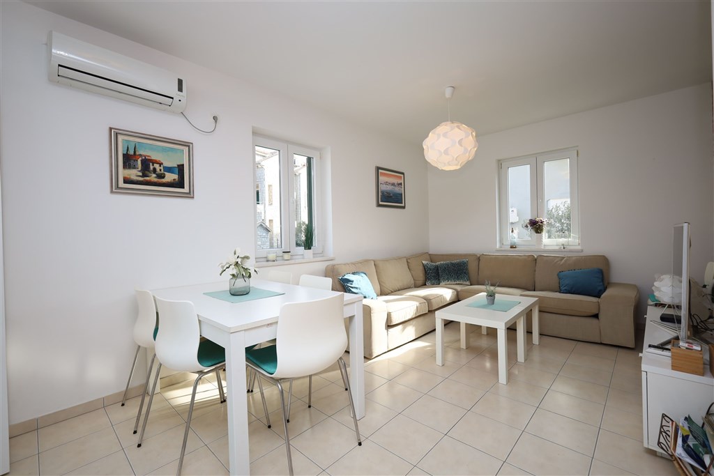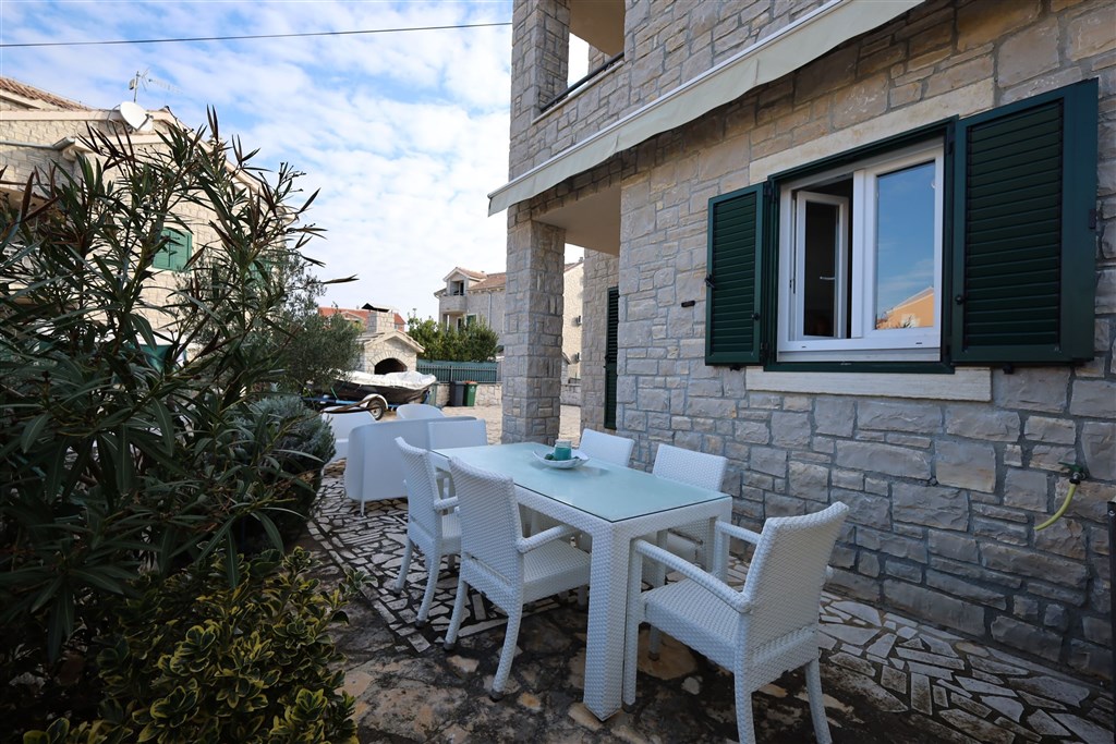 Řadový dům má celkovou užitnou plochu 129,50 m2. K domu náleží 2 parkovací stání, dlážděný dvůr/terasa 30,45 m2. Dům je orientován na východ, sever a západ. V přízemí je vstupní hala/chodba, koupelna, kuchyně s jídelním koutem a obývacím pokojem se vstupem na terasu. V prvním patře jsou 2 ložnice (jedna s terasou), chodba a koupelna. V podkroví jsou 2 ložnice (jedna z nich má terasu a výhled na moře) a koupelna. V domě jsou plastová okna se žaluziemi, klimatizace na každém podlaží. Nábytek, kromě osobních věcí prodávajícího, je v ceně nemovitosti.