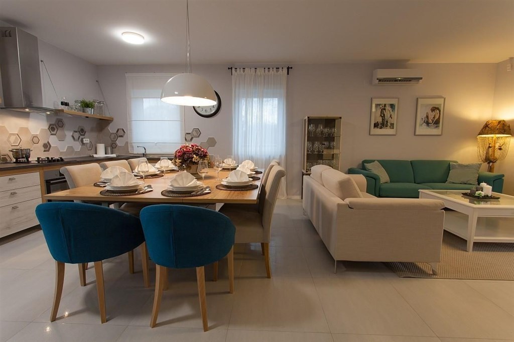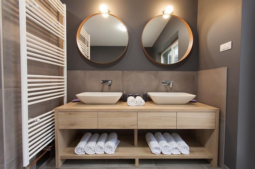 V přízemí dvoupodlažního domu se nachází vstupní chodba, koupelna se saunou, technická místnost, komora s prádelnou, velká ložnice, obývací pokoj s kuchyní a jídelnou se vstupem na prostornou terasu a vyhřívaný bazén o velikosti 42 m2, jacuzzi. V 1. patře jsou tři ložnice a dvě koupelny a velká terasa. V suterénu se nachází komora o velikosti 70 m2, kterou lze zařídit dle vlastního přání. Na zahradě je i venkovní kuchyně s krbem. Všechny místnosti v domě jsou klimatizovány, ohřev vody zajišťují solární panely, v obytné části je možnost vytápění krbem. Dvůr má automatický zavlažovací systém a kamerový dohled, stejně jako nabíjecí stanici pro elektromobily. Dům se prodává s veškerým nábytkem a vybavením.