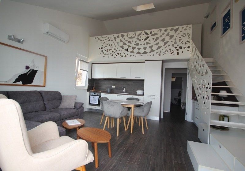Dovolujeme si Vám nabídnout na prodej krásně a moderně zařízený apartmán s 1 ložnicí, galerii s prostorem na spaní, velkou terasou a otevřeným výhledem na moře v městečku Mimice ve Splitské oblasti v Chorvatsku.