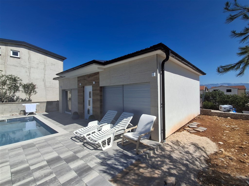 Dovolujeme si Vám nabídnout na prodej plně vybavený menší dům s bazénem na ostrově Vir, jenž je mostem spojený s pevninou, v Zadarské oblasti v Chorvatsku.
