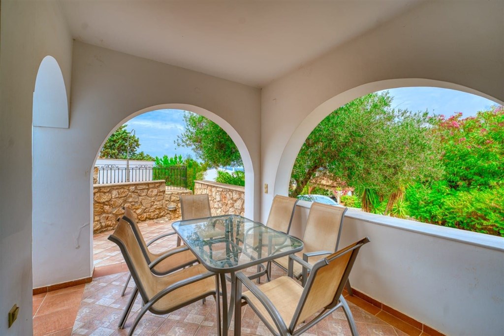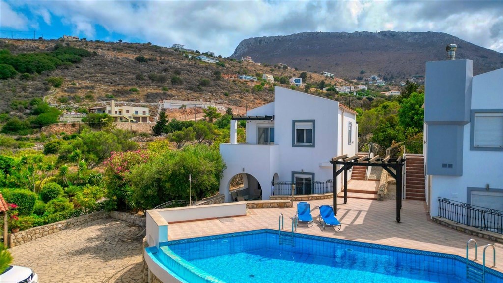 Venku se nachází společný bazén s prostorem na opalování a soukromé parkovací místo. Vila se nachází v blízkosti řady zařízení, jako jsou taverny a obchody, a také v blízkosti některých z nejkrásnějších písečných pláží v regionu Apokoronas.