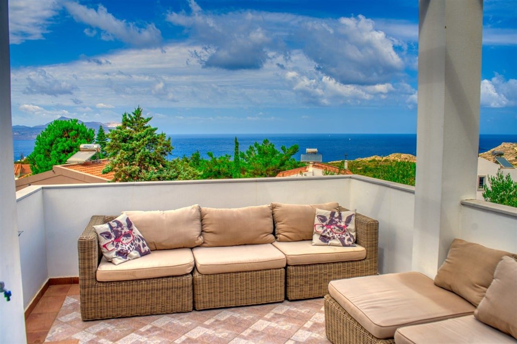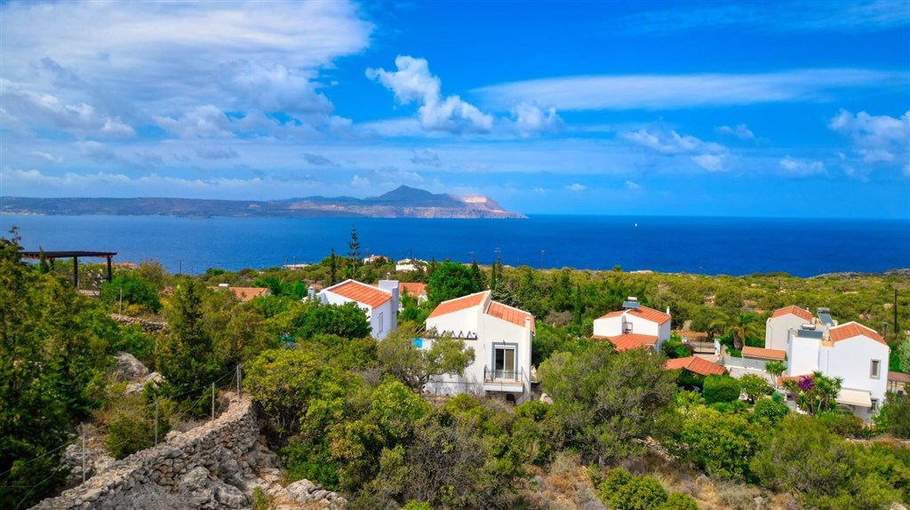 Na prodej klidná vila s nádherným panoramatickým výhledem na moře, oblast Chania, Kréta, Řecko