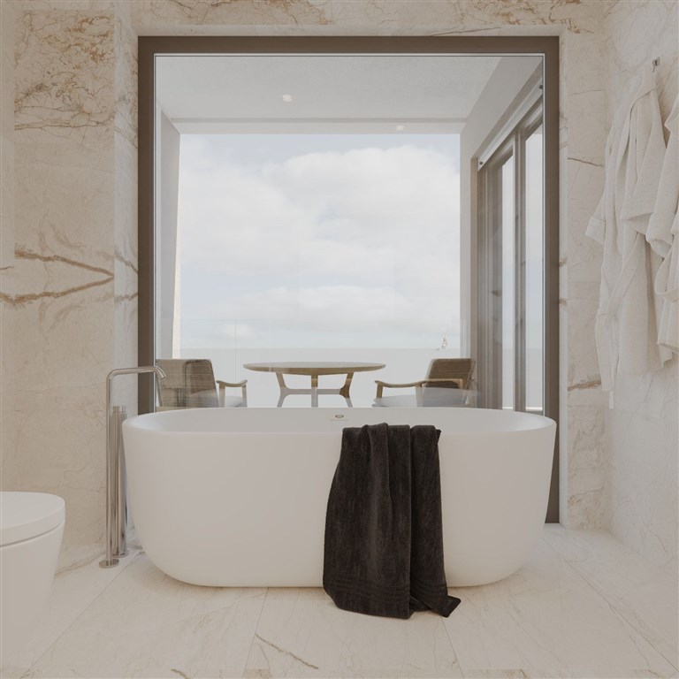 Budova se nachází v pěkné a klidné čtvrti, ideální pro odpočinek a relaxaci, pouhých 400 m od krásné oblázkové pláže. Nastěhování je plánováno na prosinec 2026.