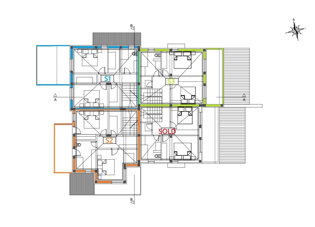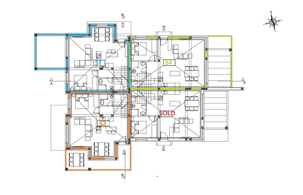 Dům s celkovou užitnou plochou 115,95 m2 má dvě podlaží. Přízemí sestává z chodby, koupelny, ložnice a otevřeného obývacího pokoje s kuchyní a jídelnou s přístupem na terasu a bazén o velikosti 23,76 m2. V 1. patře se nacházejí dvě ložnice (jedna z nich s terasou), koupelna, úložný prostor. Na pozemku je jedno parkovací stání.