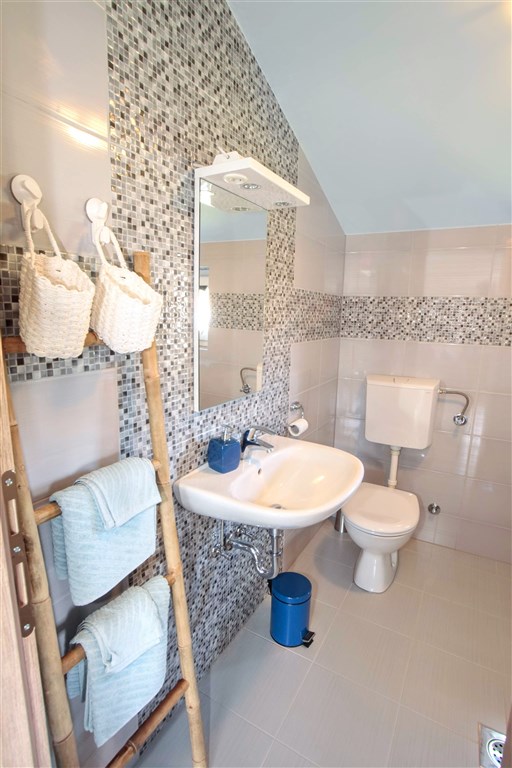 V přízemí domu se nachází jednopokojový apartmán o rozloze 66,37 m2 + terasa o ploše 9,878 m2. Vnitřní schodiště vede do 1. patra o rozloze 53,30 m2 kde je dvoupokojový apartmán s terasou 9,40 m2 a balkonem 18,64 m2. Vnější schodiště vede do podkroví o rozloze 50,26 m2 kde se nachází další dvoupokojový apartmán s prostornou terasou 20,32 m2. Na dvoře je samostatná budova s jednopokojovým apartmánem o rozloze 29,90 m2. Vše je kompletně zařízené, klimatizované, připravené k nastěhování. Jsou instalovány solární panely pro vlastní výrobu elektřiny, což zajišťuje značné úspory energie. V přízemí budovy se nachází krytá terasa o velikosti 20 m2 s nádvořím. Na pěkně upraveném pozemku o velikosti 1011 m2 můžete strávit krásné chvíle u grilu s přáteli. Na pozemku lze parkovat 4 vozidla.