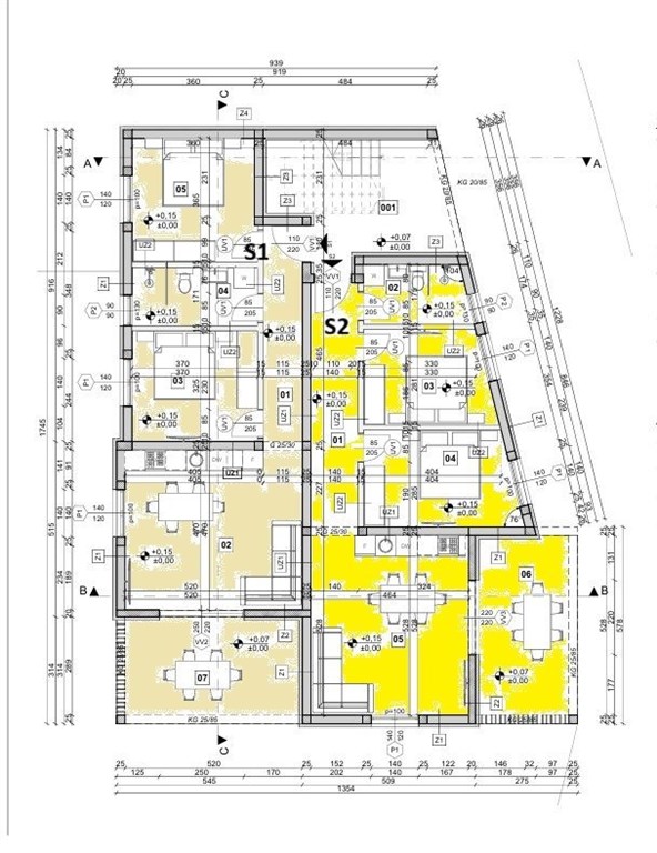 Apartmán o užitné ploše 71,57 m2 je situovaný v přízemí třípatrové budovy a sestává z chodby, dvou ložnic, koupelny a prostorného obývacího pokoje propojeného s kuchyní a jídelnou se vstupem na krytou terasu a dvorek o rozloze 130 m2, který lze upravit dle vlastních představ .